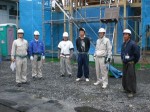 足場などの設置状況など、危険箇所を一通り確認したあと、作業者全員を集めて安全確認をしました。