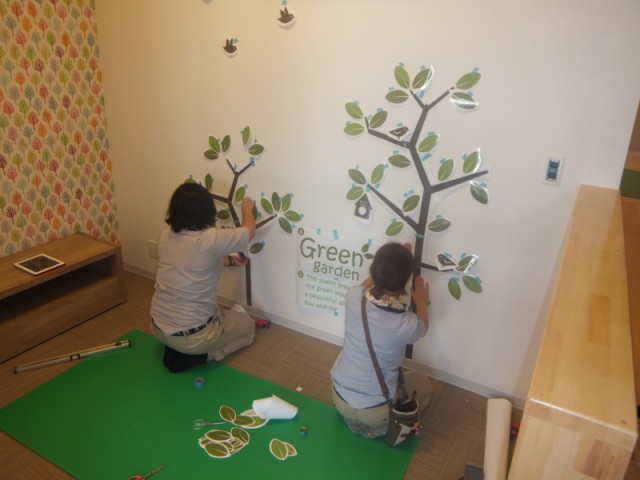 先日OPENしました足利のショールーム・Housing+のチャイルドルームの壁紙にウォールステッカーというモノが貼られています☆