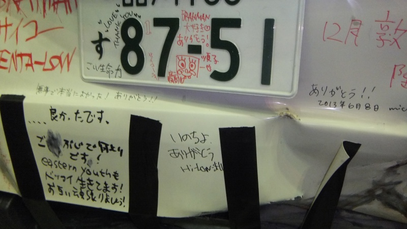 ライブ終了後、ファンがMCで触れた事故車に書かれたメッセージ
