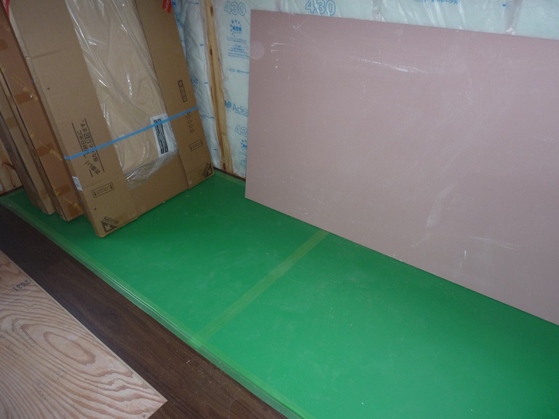 材料は養生版の上に置いて、床に傷がつかないように。。。
