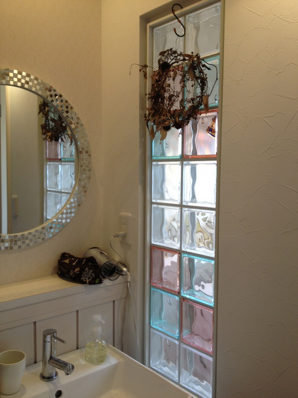 子世帯の洗面所とトイレの間仕切り壁に明り取りのために設置しました☆