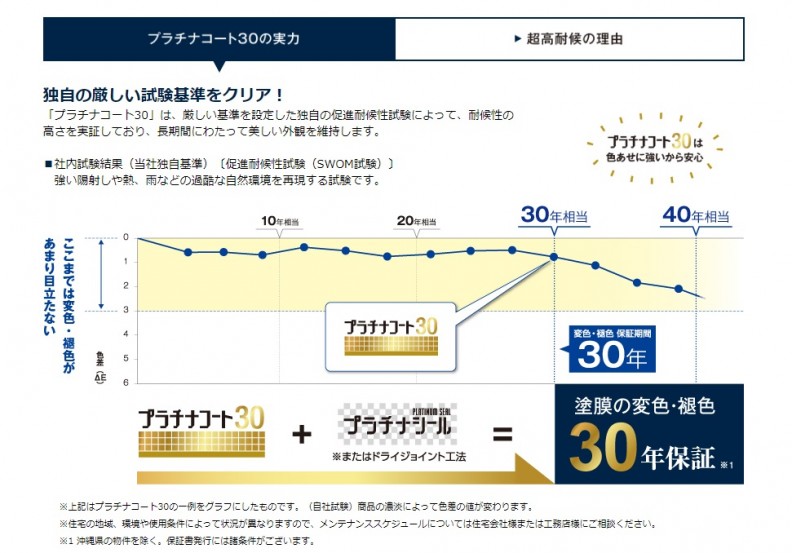 窯業系サイディング業界初となる塗膜の変色・褪色30年保証のサイディング材で