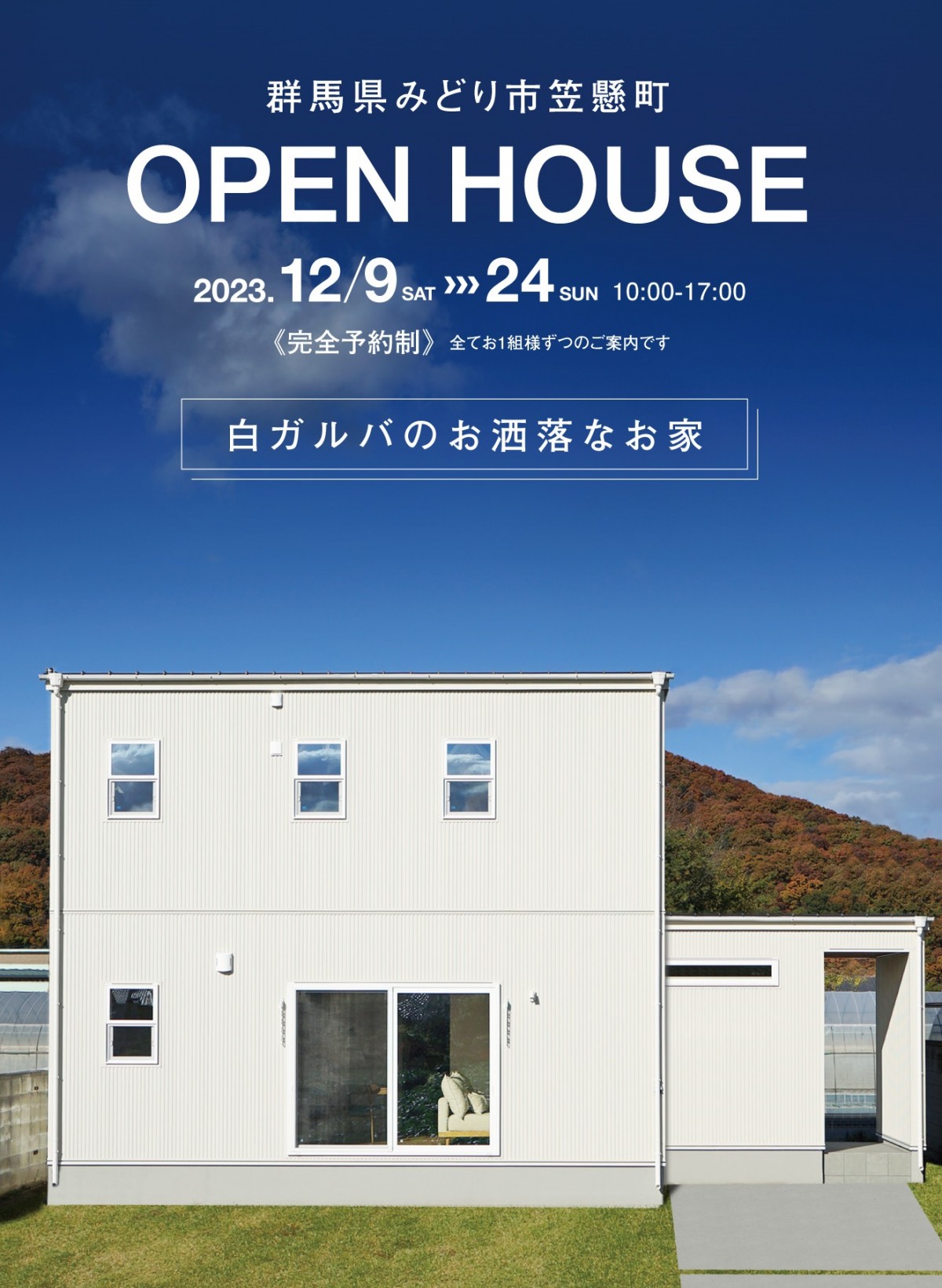 みどり市笠懸町で白いガルバのお洒落なお家の完成見学会を開催します!