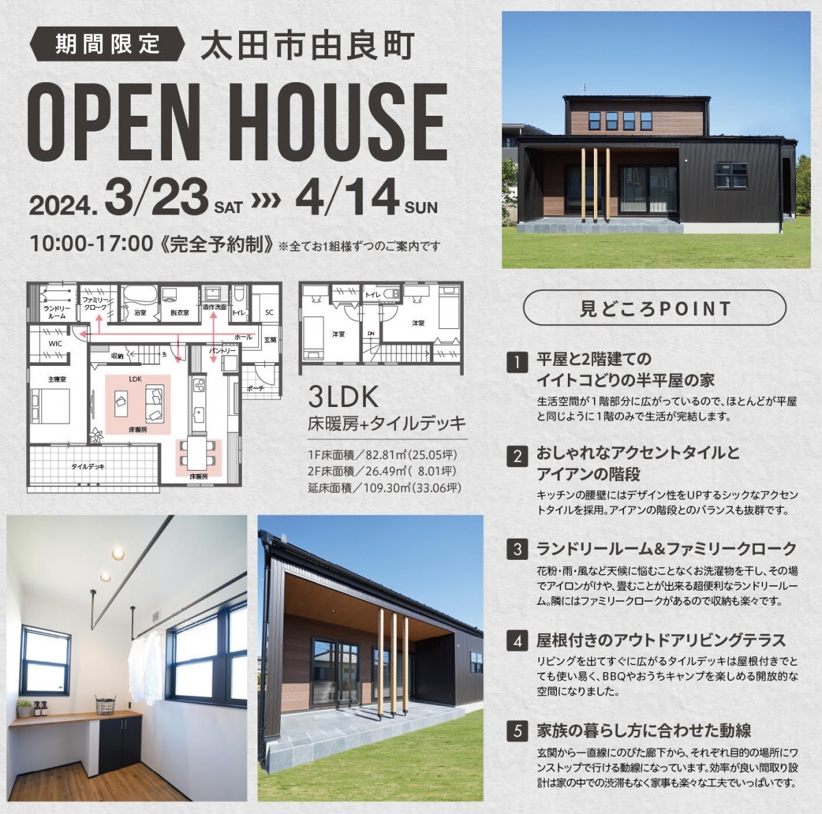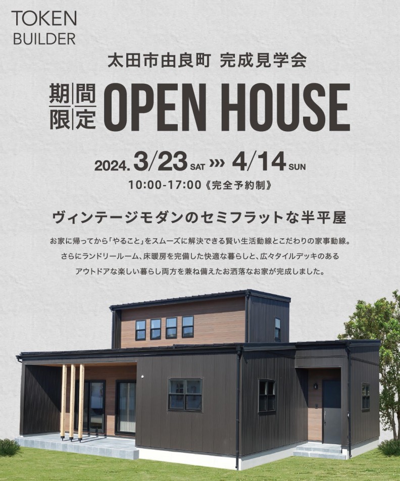 太田市由良町で人気の半平屋の完成見学会を期間限定開催します!