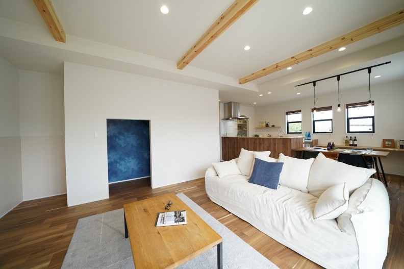 化粧梁と折り上げ天井で解放感を感じれるリビングにはヌック