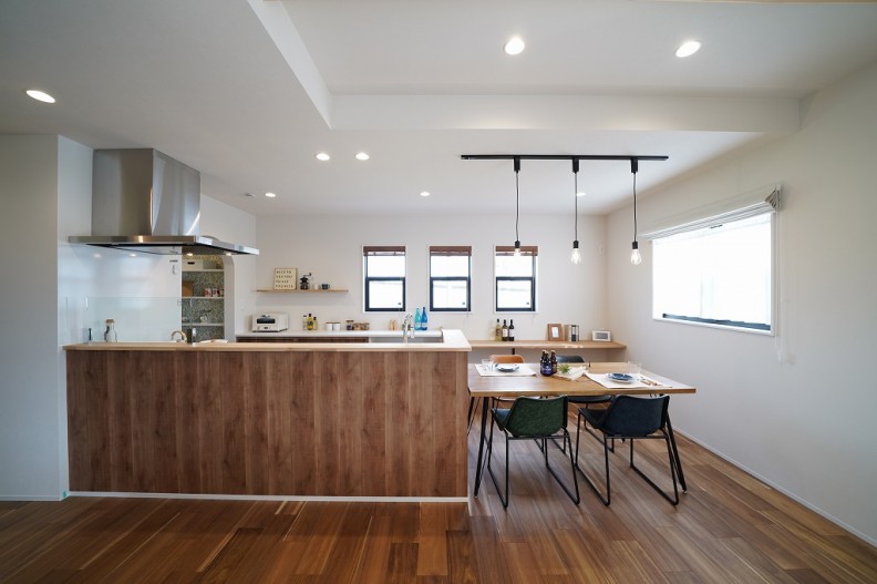 キッチン&ダイニングには東側と南側に窓を設けたので、一年中を通して光が差し込み、風が通り抜けらえる空間になりました。