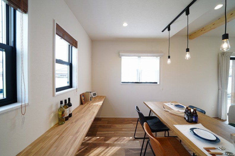 東側には造作カウンターを設置。ちょっとした作業や読書、お茶を楽しむことが出来ます。