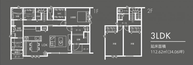 生活空間が1階部分に広がっているので、ほとんど平屋と同じように1階のみで生活が完結する間取りです。