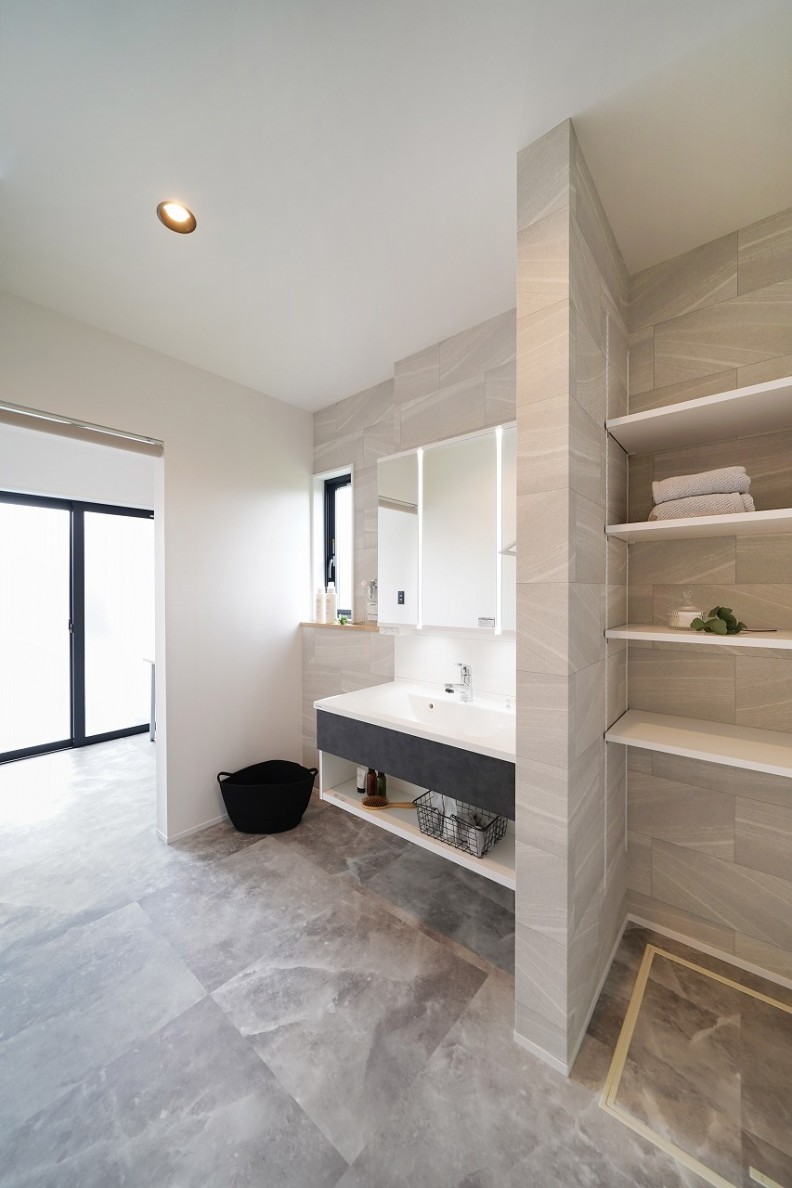 洗面所→ランドリー→ポーチと家事動線が短くなるように設計。