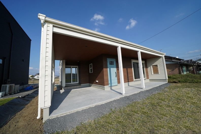 軒下はテレスになっていて日差しを避けながらBBQやお茶を愉しんだり、雨の日に野外作業など様々な用途で利用できます。