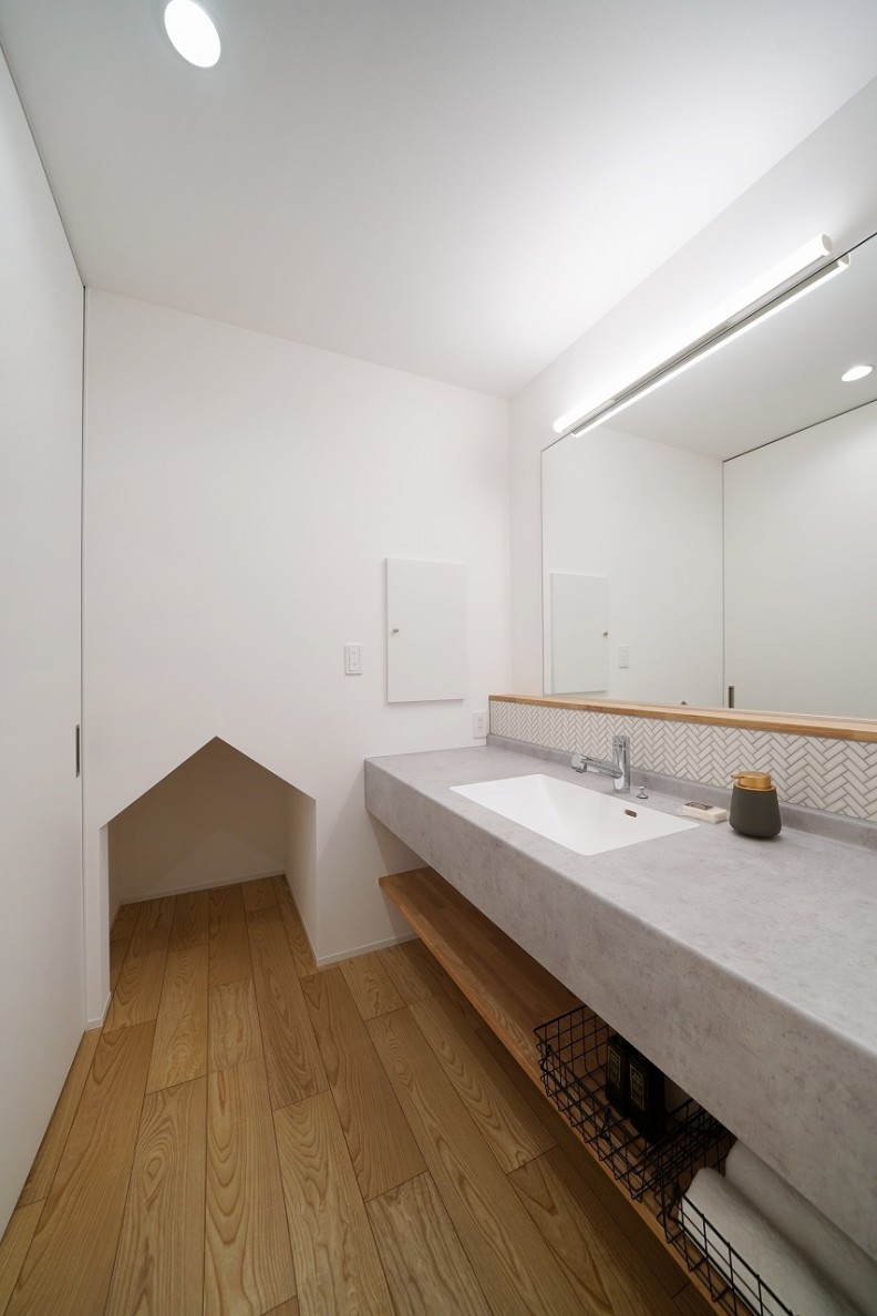 階段下には三角の下がり壁がかわいい猫ちゃんスペースがあります。