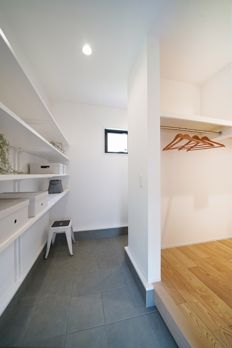 外出から戻るとシューズクローゼットからウォークインクローゼットへ直行できる便利な動線。