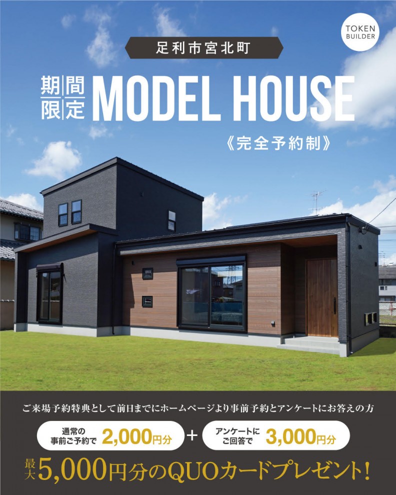足利市宮北町に期間限定で人気の半平屋のモデルハウスがオープンします!