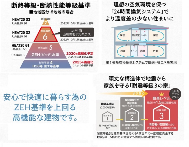 耐震等級3に断熱等級6と24時間換気システムで安心で快適に暮らせる住宅性能