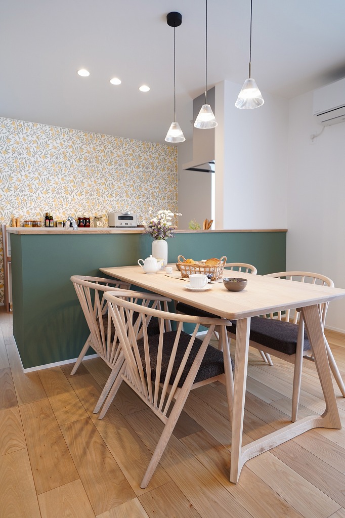 優しい色合いで居心地の良いカフェのようなキッチン&ダイニング