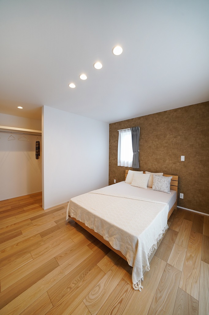 ご夫婦で使う広々とした主寝室は幅広の造作カウンターや大容量のウォークインクローゼット、インナーバルコニーなどご夫婦がストレスなく寛げる空間になりました。