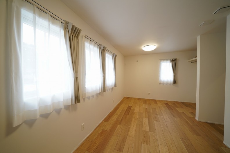 2階の大空間の洋室はドアが二つあり、お子様達が成長した時など仕切る事で二つの部屋に分けることが出来ます。