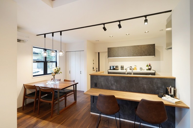 落ち着いた雰囲気のあるキッチンカウンターは食事やお茶に、お子様のスタディースペース