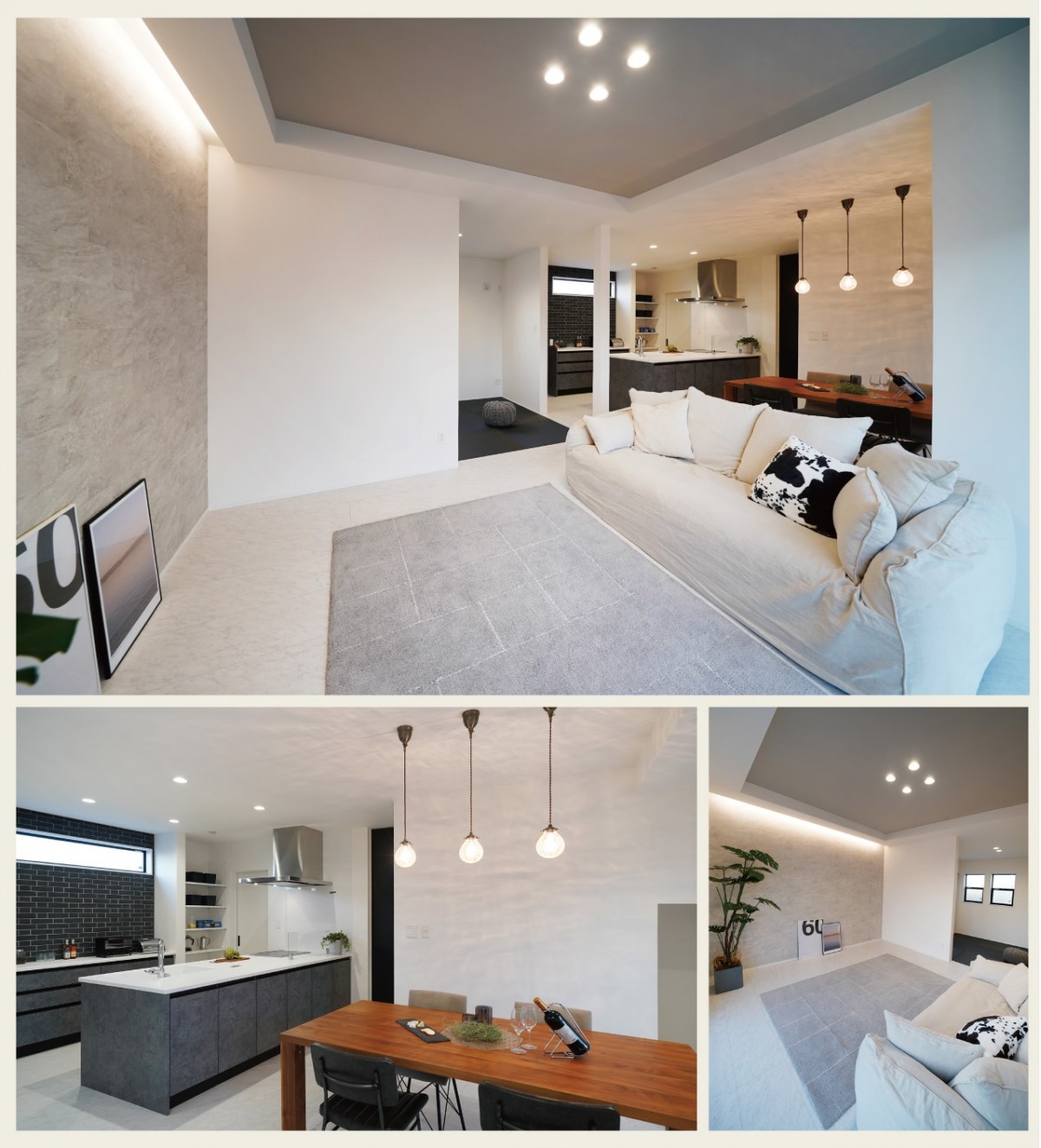 ブラックやグレーのアクセントと合わせてモノトーンなデザインに仕上げています。