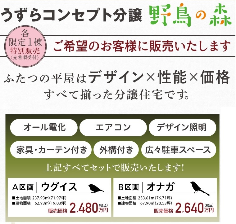 【野鳥の森】二つの平屋モデルハウス GRAND OPEN
