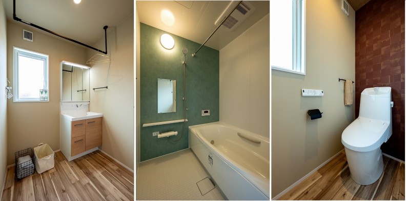 キッチン・洗面脱衣所・浴室・トイレの水回りが近い家事楽動線。