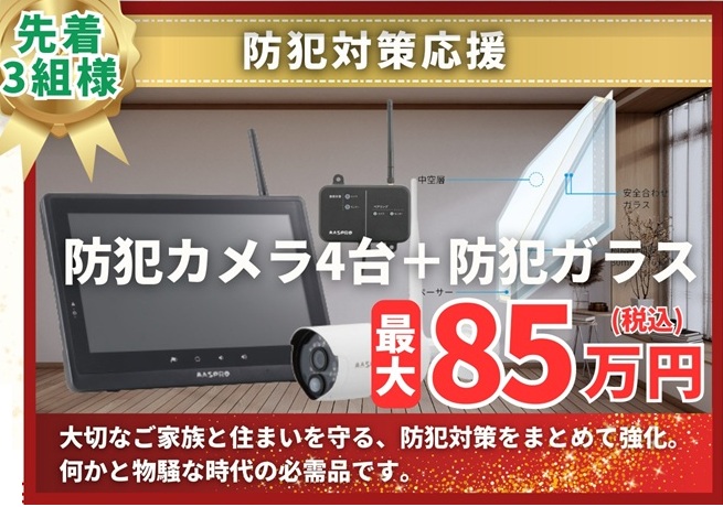 【限定3組】防犯カメラ+防犯ガラス