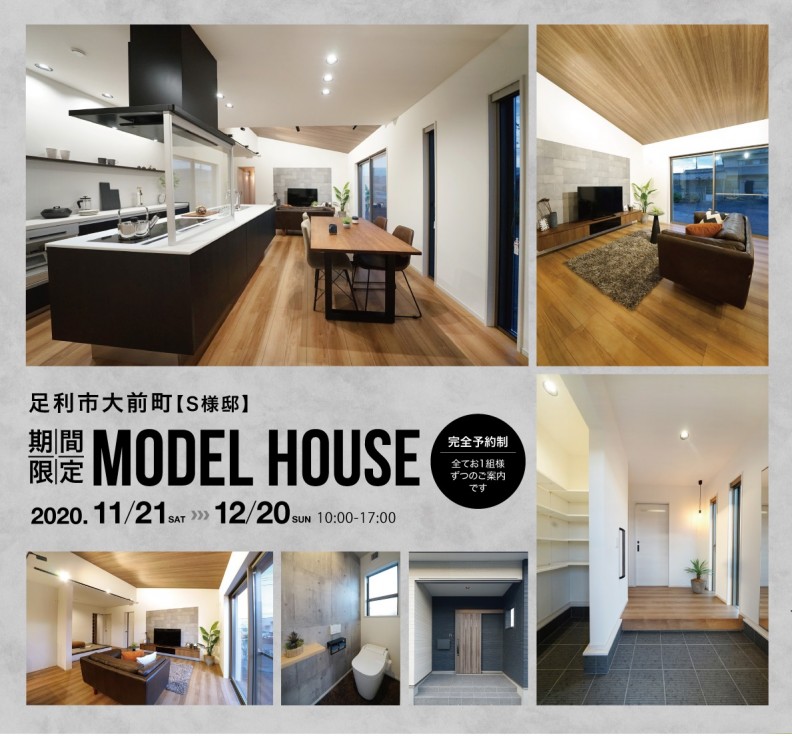 足利市大前町の平屋モデルハウスで期間限定見学会を開催致します。