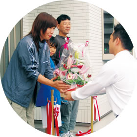 打ち合わせ~お家が完成するまで、いつもワクワクするような夢のある家づくりに心がけ、完成後は新しい生活のスタートになるお引き渡しセレモニーや感動を呼ぶ写真集、奥様へのサプライズプレゼントなど、笑顔になっていただける仕掛けを沢山準備しております。