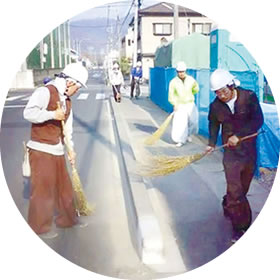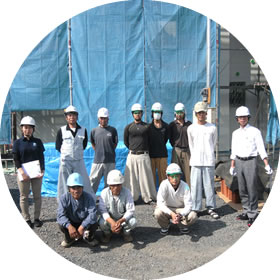 - 私達は、社員及び協力業者による現場一斉清掃で、お客様の大切な住まいを完成まで見守ります。