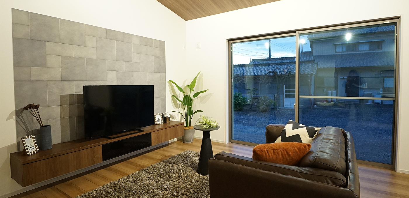 落ち着きのあるモノトーンのインテリアでモダンでシックな⼤⼈空間を演出しました。⼤⼝径窓で光を多く取り⼊れることで、より明るいリビングにしたり、シンプルな⾊合いで統⼀されスタイリッシュなキッチンスペースなどこだわりが詰まった場所です。