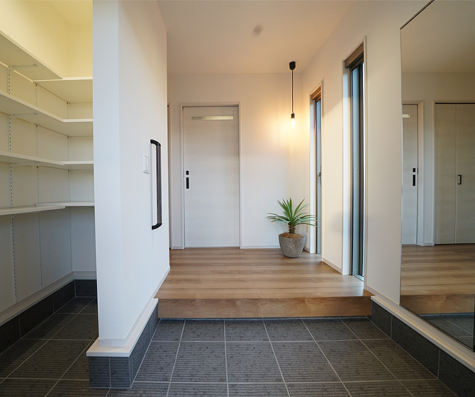 広々とした屋根付きの玄関ポーチなら雨の日も安心です。