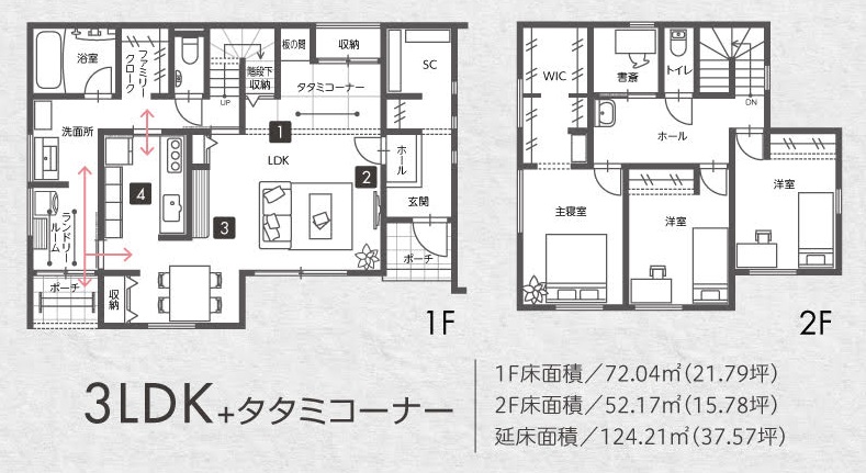 水まわりが直線的に繋がる家事楽動線ランドリールーム、、、