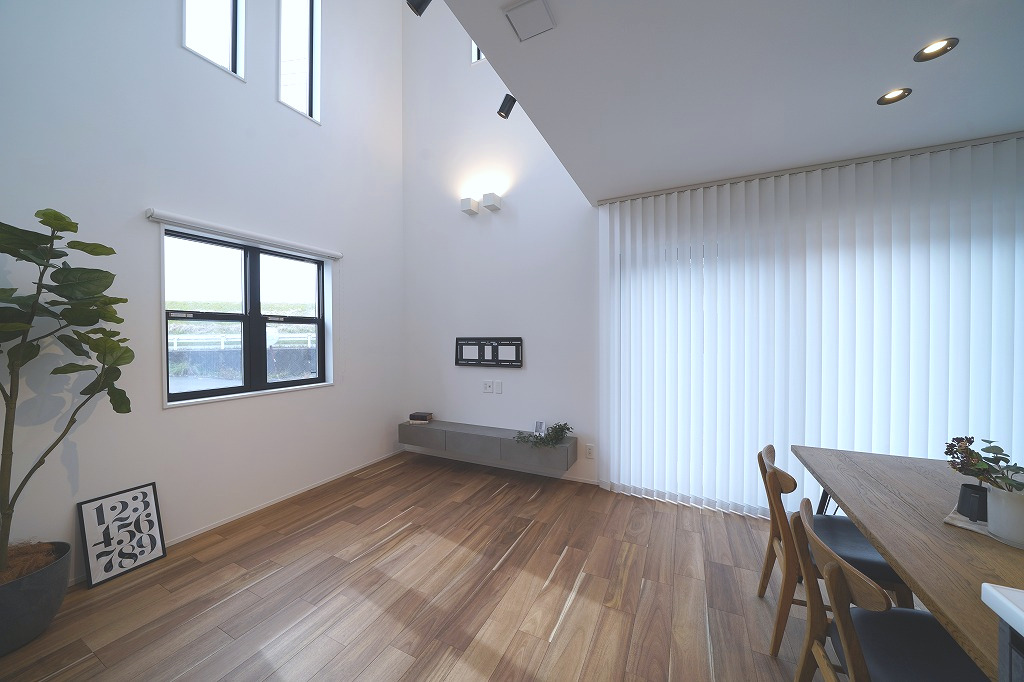 吹き抜けリビングは光と開放感を日常に与えてくれます。