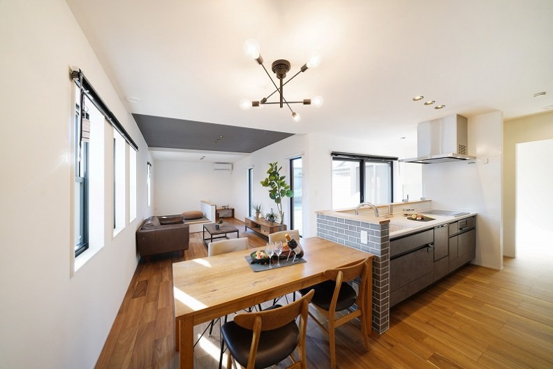 キッチンから直線的に抜ける視界が、開放感をより一層引き立てます。