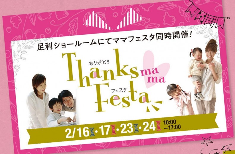 イベントページに2月開催イベント「モデルハウスオープン&ありがとうママフェスタ」を追加しました。 詳細はこちら