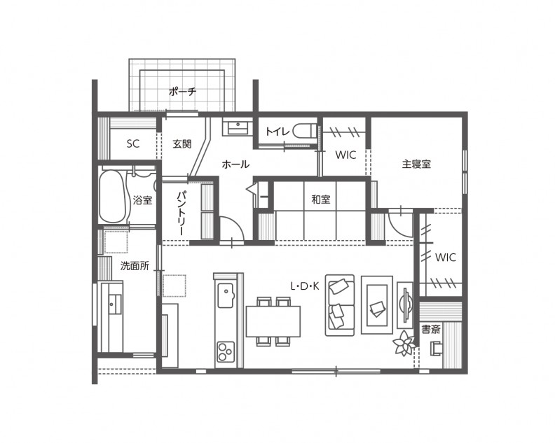 小上がり和室と書斎に繋がるモダンテイストのスタイリッシュなLDK