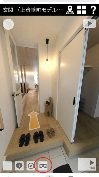 画面下にある「VRゴーグルモード」アイコンをタップします。