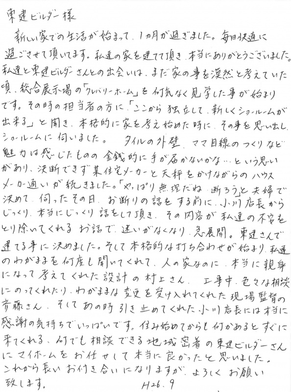 私達の家を建てて頂き本当にありがとうございました。