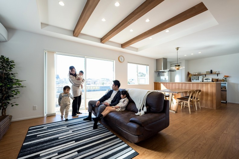 I様:開放的なリビングと毎日、子供達が楽しく遊んでいる姿を見れて大変満足しています!