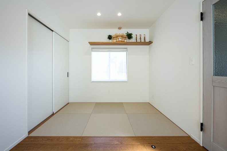 リビングの一角にちょっとした和室スペースを作り、子供達がくつろげる空間を作りました。