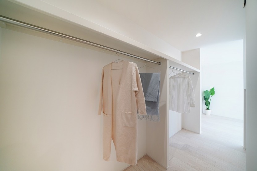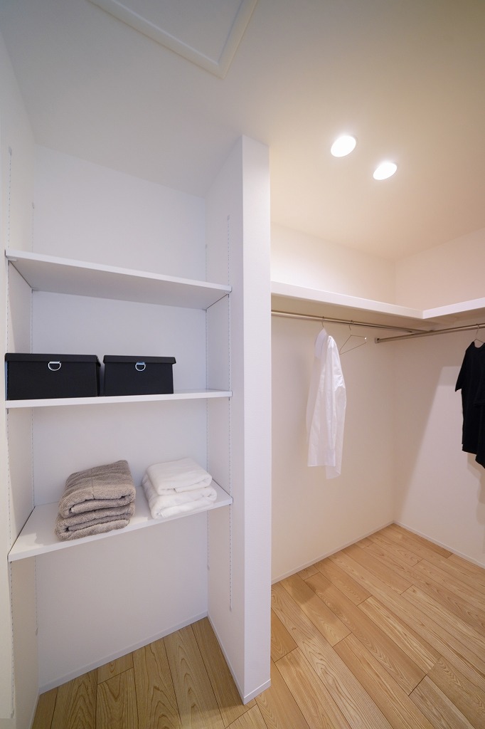 主寝室からもランドリーからも近いウォークインクローゼットは回遊導線を作りつつ日常の家事楽に繋がります。