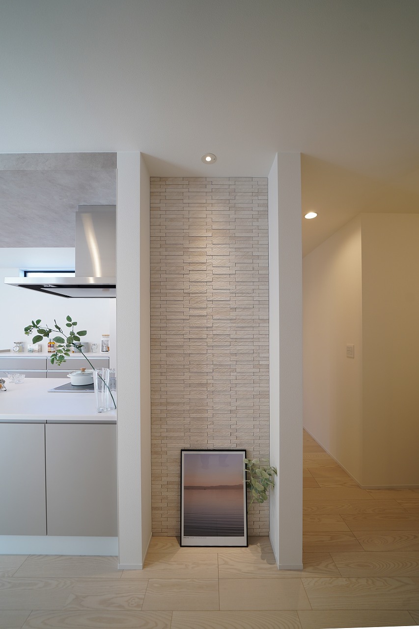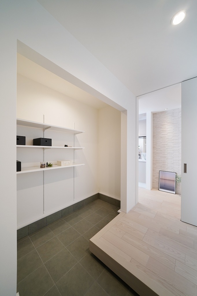 ハイドア(標準)の扉を開けるとすぐ目に入るエコカラット。ダウンライトの光で照らすことで美しい陰影感が出て、ワンランク上の空間に演出できます。アートやグリーンなど季節に合わせて飾りつけをすると毎回違った表情を楽しめます。