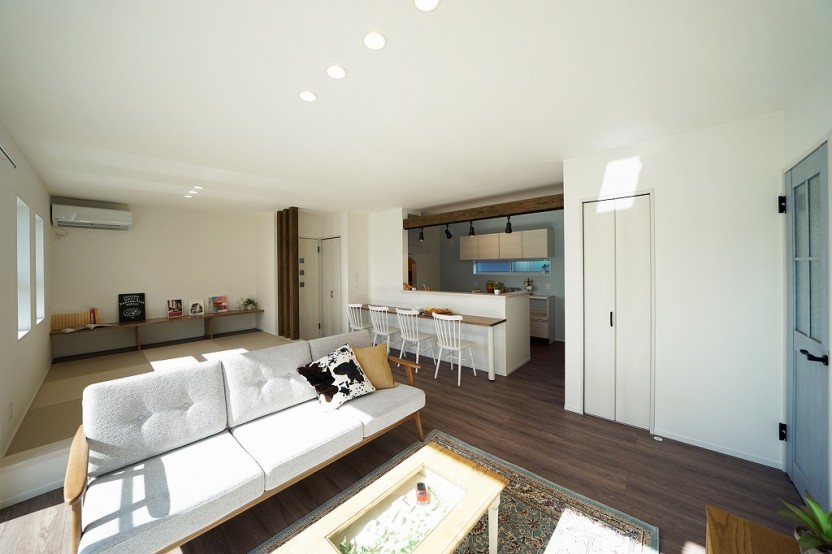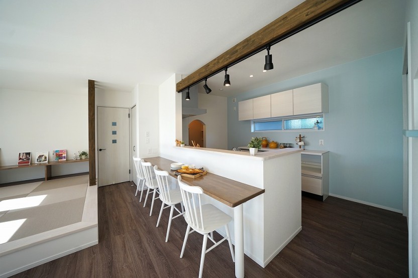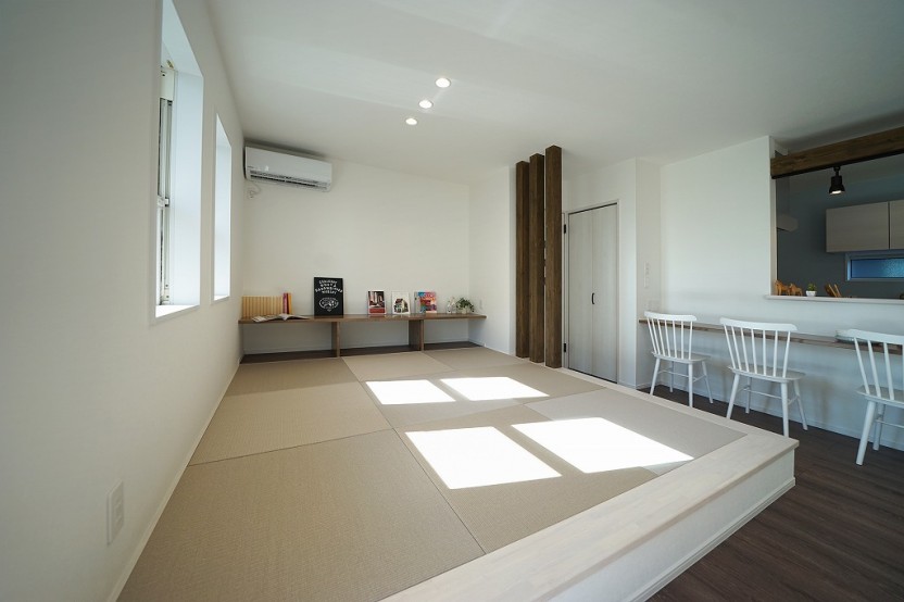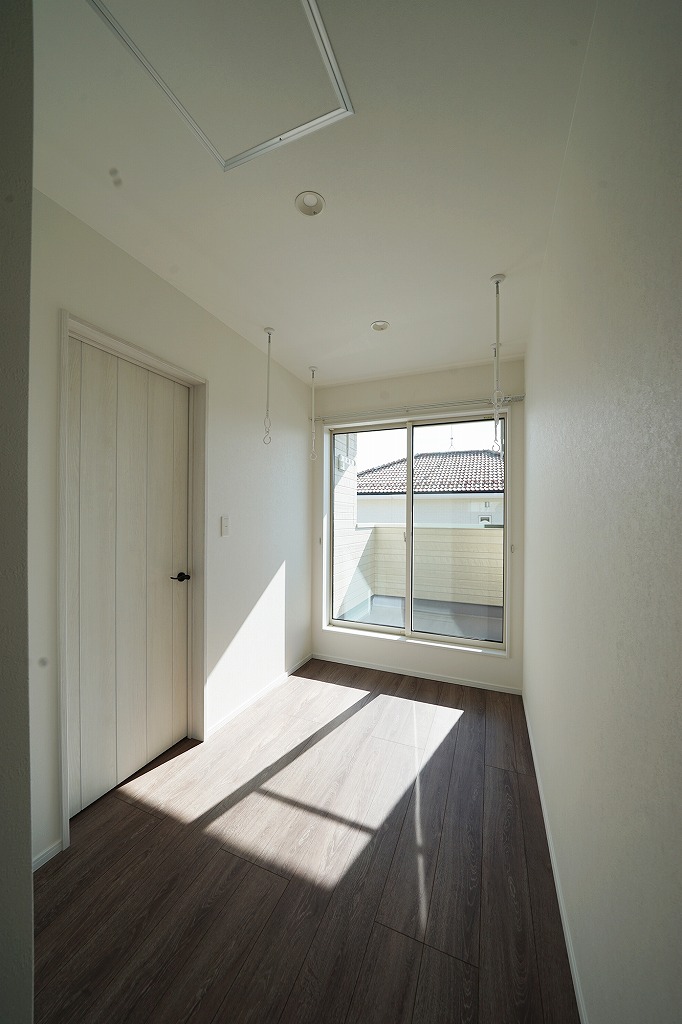 家族みんながバルコニー行ける2階ホール。 室内干しできる工夫も。