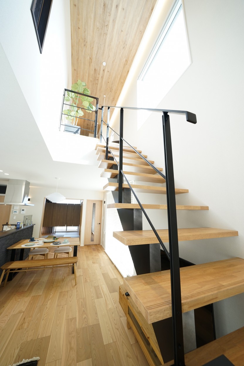 スケルトン階段と吹き抜けで明るく広々した空間!!
