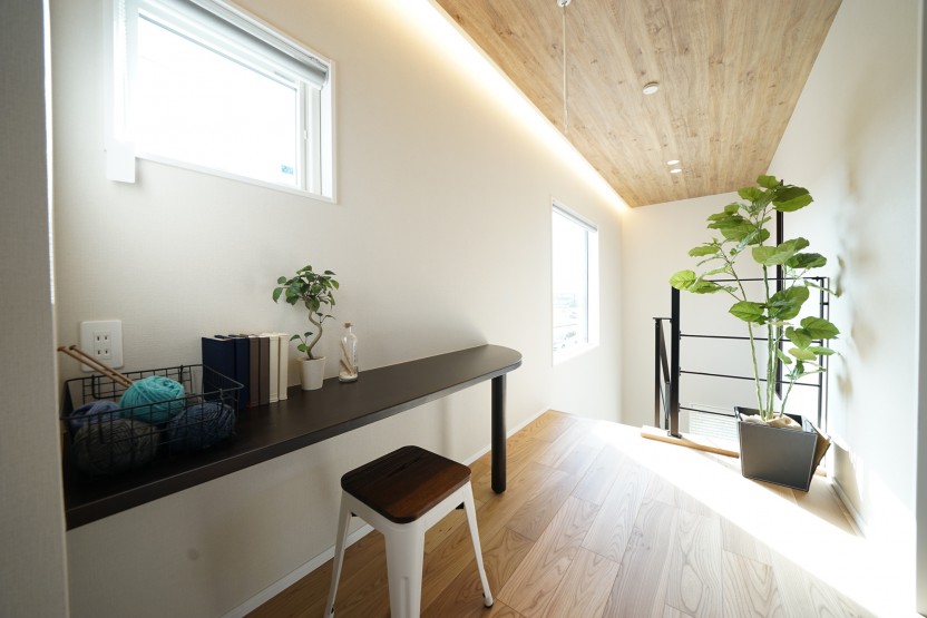 2階ホールの共有スペースに家事楽カウンター!趣味や洗濯物をたたんだり!用途は様々です。
