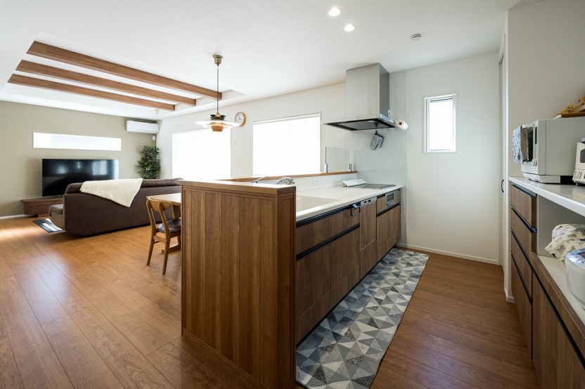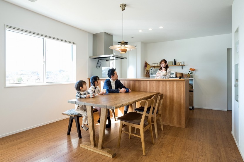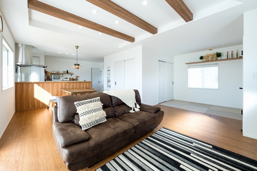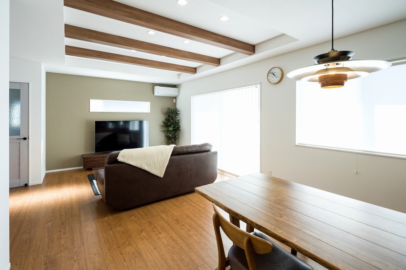 内観は都会的なモダンと自然素材のナチュラルを組み合わせたかっこいいインテリア。