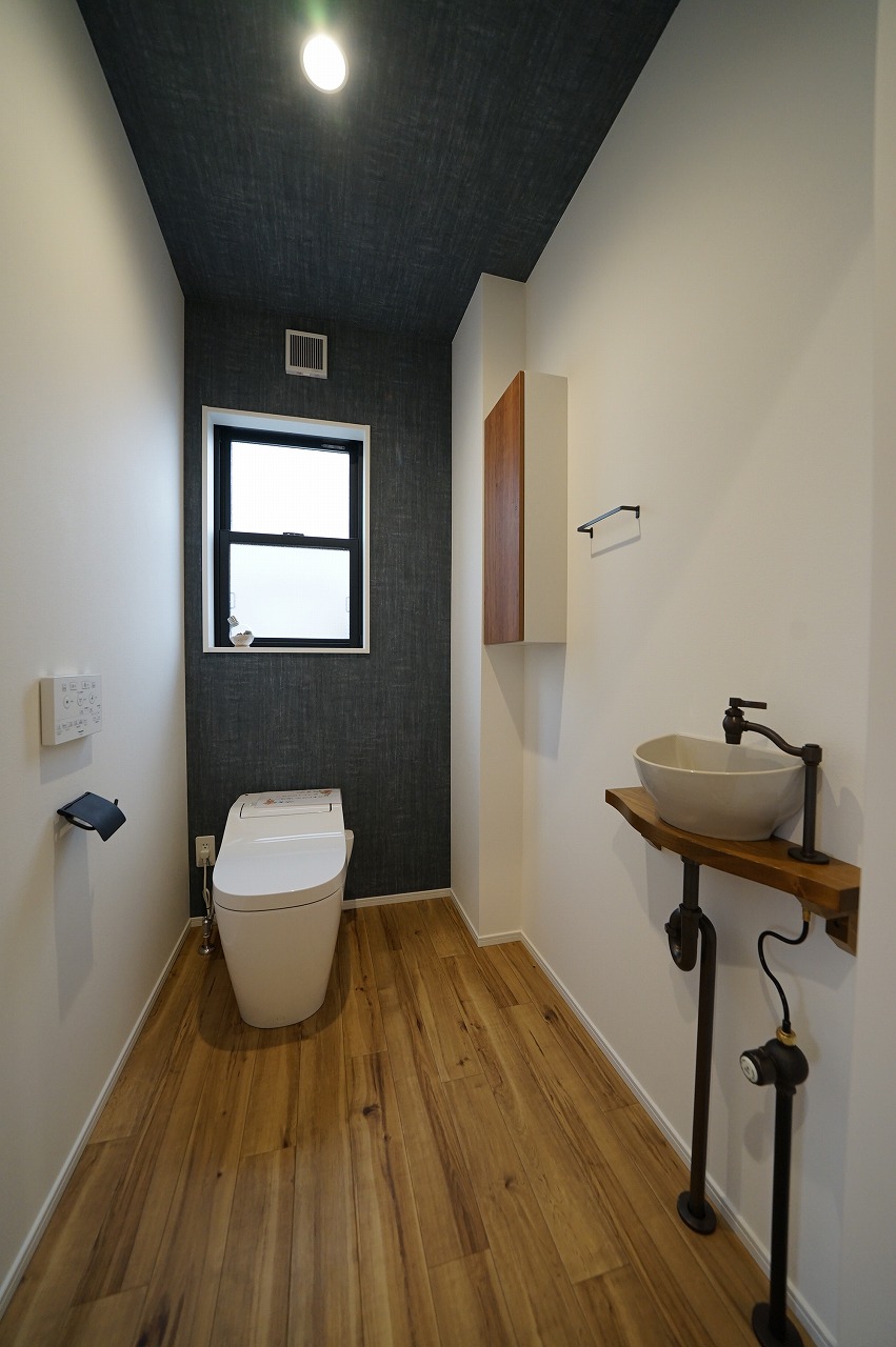 リビングと繋がる飾り窓がおしゃれな玄関ホール。右のスペースはアウター掛けやシューズクロークのあるスペース。育ちざかりのお子様が汚れて帰ってきても、リビングを通らずに洗面所やトイレ、バスルームに直接行けるようになっています。