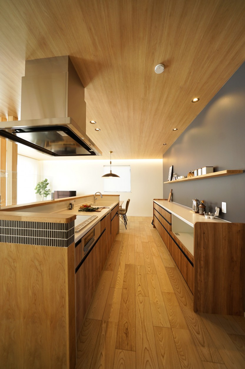 アイランド型のキッチンをセンターに置いたことで、いつも家族の笑顔が溢れ、家族の絆を深めて愉しい暮らしを実現します。