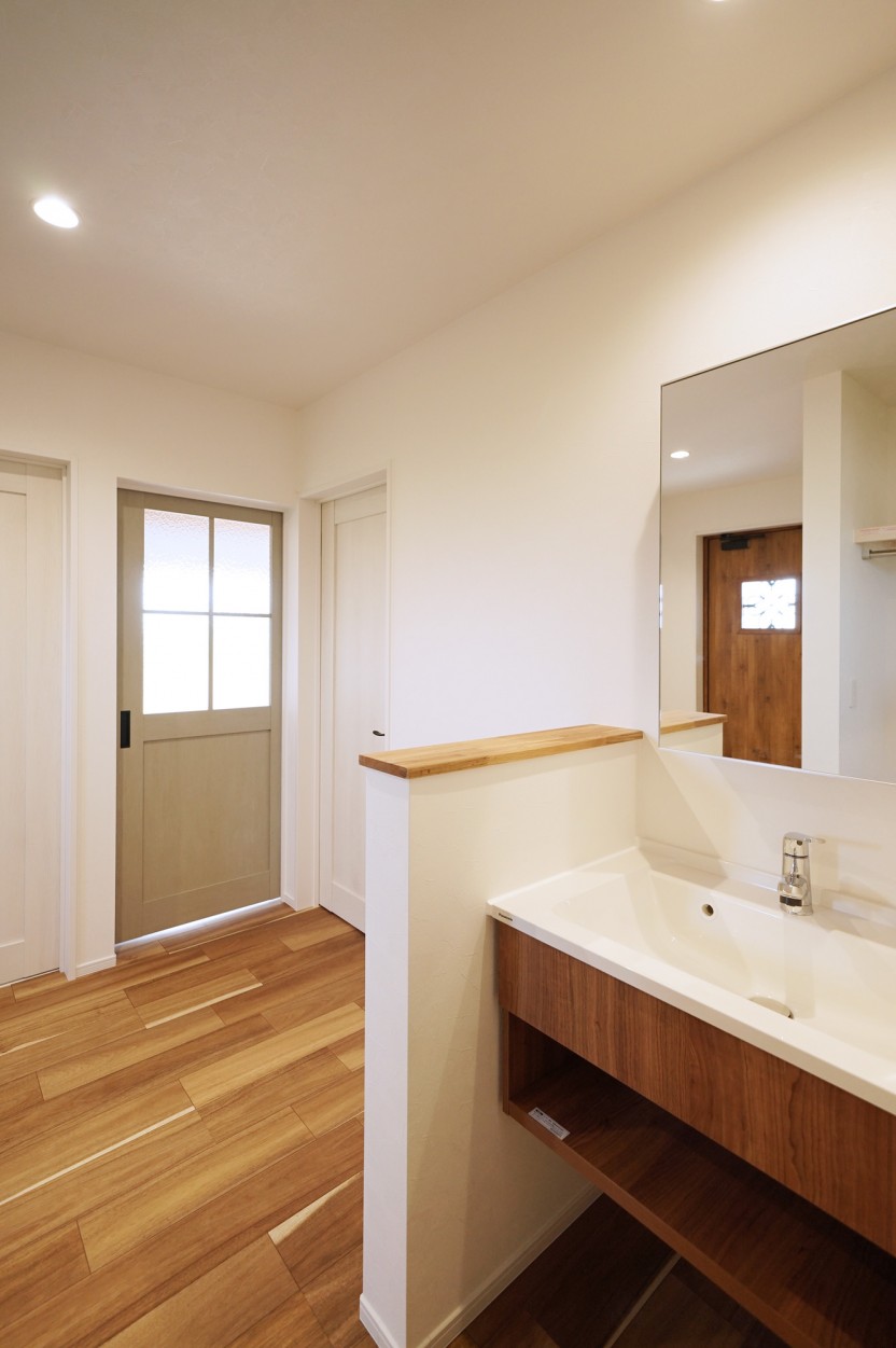 玄関ホールにある洗面所は帰宅後の手洗いなど出来て、コロナ対策もバッチリです。