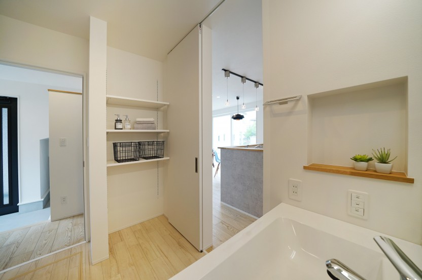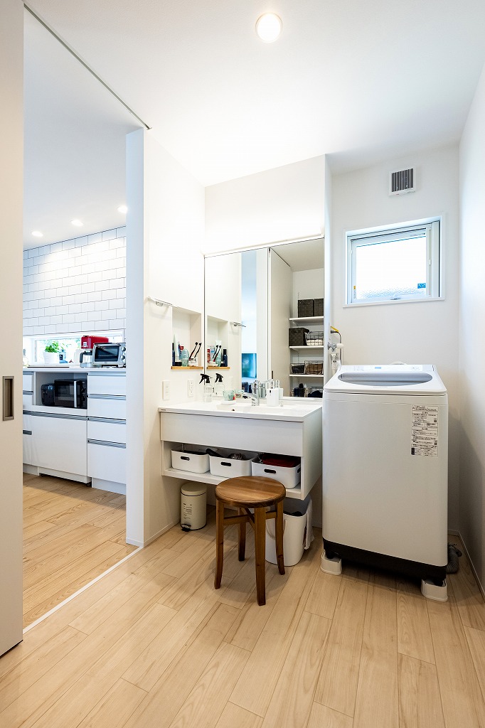 造作カウンターを設置したことで多目的に使えるランドリースペース